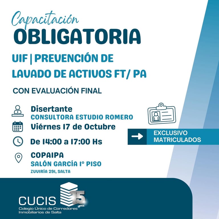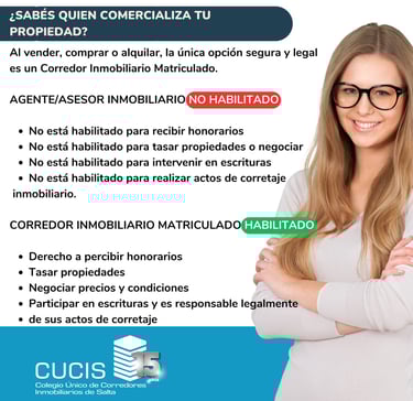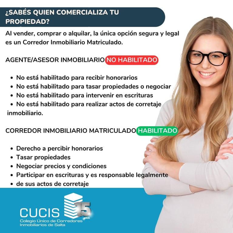 En Fedre Quinteros Inmobiliaria formamos parte del Colegio Único de Corredores Inmobiliarios de Salta (CUCIS), entidad que regula y respalda el ejercicio profesional del corretaje inmobiliario en la provincia.